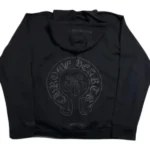Constructed from premium heavyweight 100% cotton, the hoodie provides a perfect balance of structure, durability, and comfort. The deep black color serves as a refined backdrop for Chrome Hearts UK’ signature gothic “Cannes” lettering — typically featured on the back or sleeves — accented by the iconic cross motifs and classic Chrome Hearts branding.