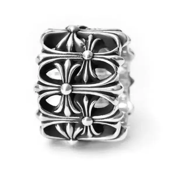 Design: Features Chrome Hearts’ iconic double floral cross design, meticulously crafted in sterling silver for a refined yet edgy look that embodies the brand’s signature gothic luxury aesthetic.