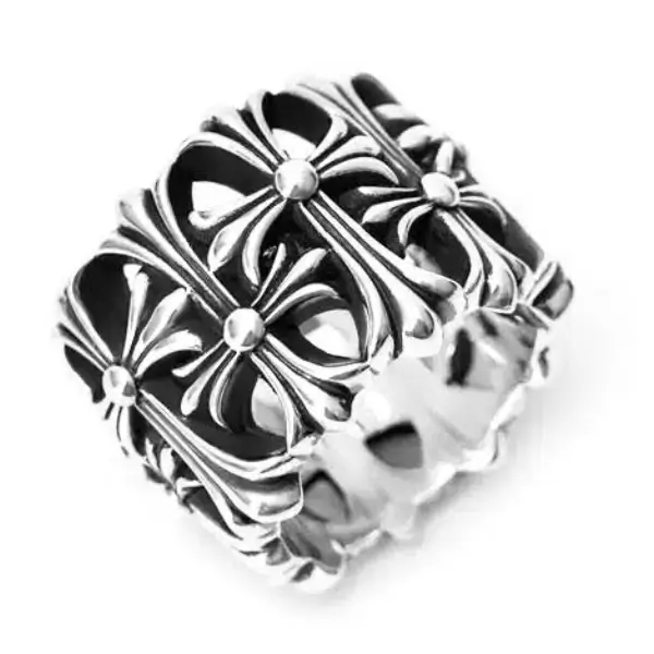 Every ring is hand-carved and hand-finished by master silversmiths, ensuring each piece carries its own unique character. Over time, the sterling silver develops a rich natural patina, enhancing its individuality and authenticity — hallmarks of true Chrome Hearts jewelry.
