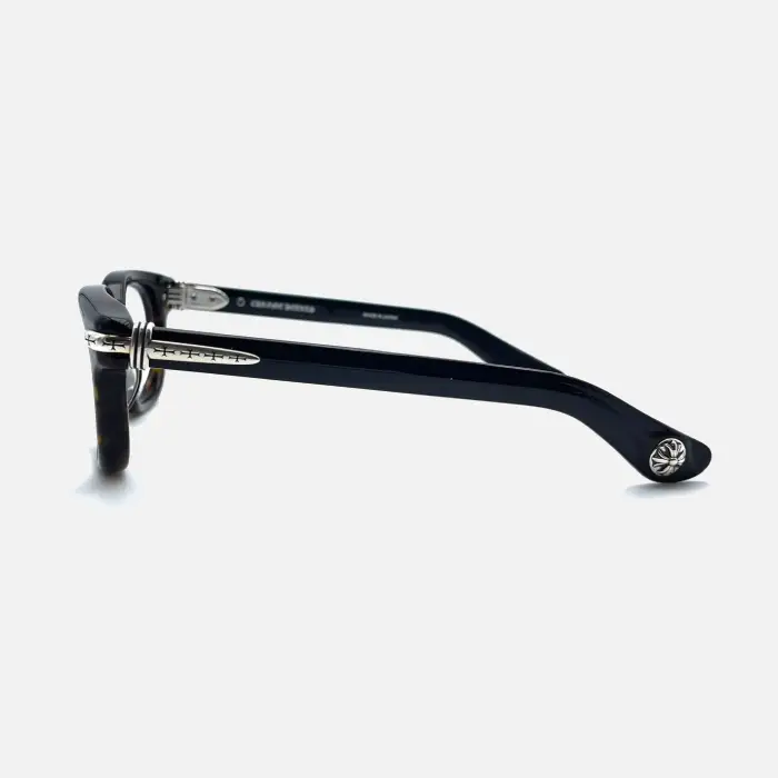 Meticulously handcrafted from dark tortoise acetate, detailed with Chrome Hearts’ signature sterling silver accents that shimmer subtly against the rich black tones. Every curve and texture carries a sense of heritage reflecting craftsmanship rooted in timeless artistry and noble taste.