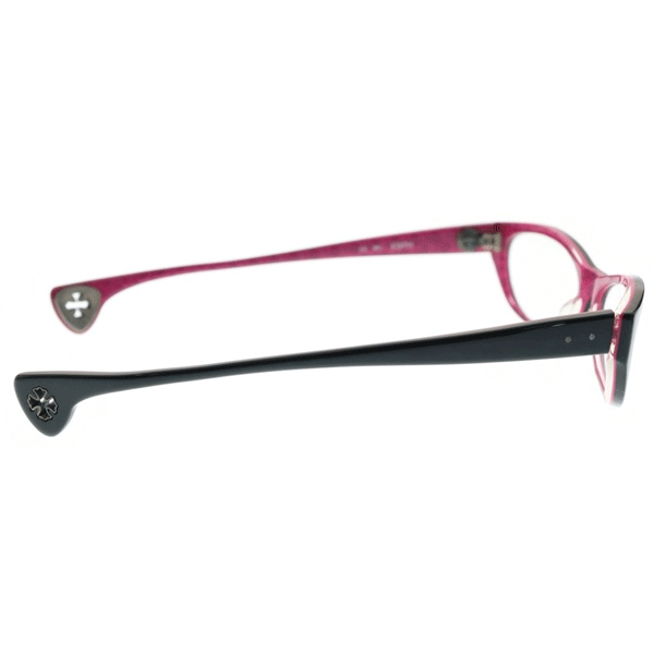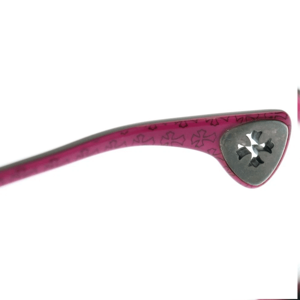 The edith model stands out with its confident silhouette and striking detailing. The frame combines premium acetate and sterling silver embellishments, resulting in a bold yet sophisticated look. Its sleek temple arms often feature Chrome Hearts’ iconic motifs like fleur-de-lis engravings or cross designs that highlight the brand’s rebellious yet refined identity.
