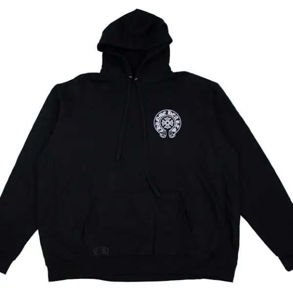 Details: Chrome Hearts logo graphics, kangaroo pocket, ribbed cuffs and hem, adjustable drawstring hood