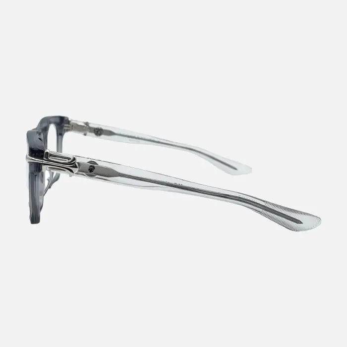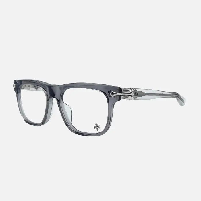 Expertly handcrafted from high-quality acetate in a luxurious smoke hue, these frames are adorned with Chrome Hearts’ iconic sterling silver detailing. The soft gradient of the smoke tone evokes a sense of mystery and sophistication, while the intricate craftsmanship reflects the brand’s legacy of art and luxury. Every element from the hinge to the temple tells a story of precision and prestige.