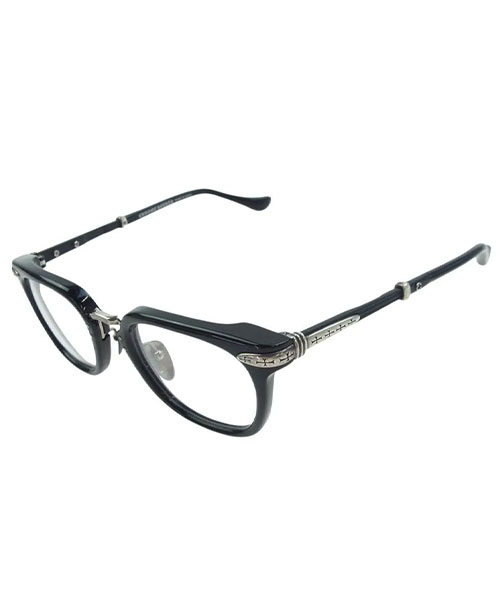 Handcrafted black acetate frame featuring Chrome Hearts’ signature sterling silver detailing and engraved gothic cross motifs on the temples