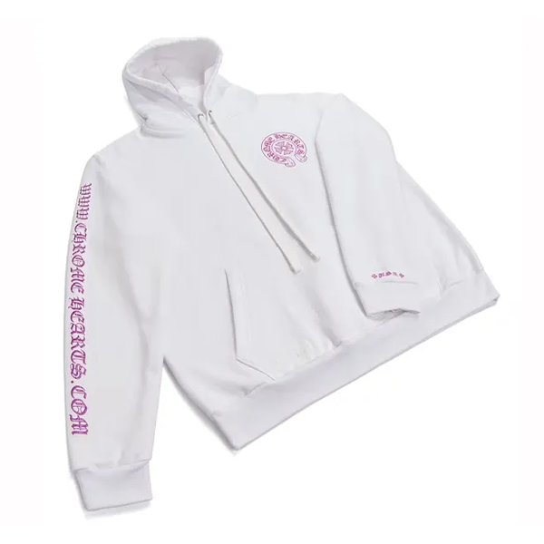 The Chrome Hearts White Hoodie redefines modern luxury streetwear with its flawless combination of craftsmanship, comfort, and bold design. Designed for those who value both style and statement, this hoodie captures the essence of Chrome Hearts’ signature Gothic aesthetic: exclusive, fearless, and timeless. Crafted in the USA from 100% heavyweight cotton, this premium hoodie offers exceptional softness, warmth, and durability. The crisp white fabric sets the perfect backdrop for the purple Gothic-style typography that runs boldly down the sleeve with “www.chromehearts.com”, and the classic horseshoe Chrome Hearts logo is printed on the chest. Subtle embroidered detailing near the wrist further adds to the hoodie’s exclusive character. Built for everyday wear, its relaxed and unisex fit ensures effortless comfort and a modern oversized look. The ribbed cuffs and hem give it structure, while the adjustable hood and front kangaroo pocket add both function and form. This hoodie transitions easily from streetwear to upscale casual, making it an essential addition to any luxury wardrobe. With a limited production run, the Chrome Hearts UK The White Hoodie stands as a rare collectible that represents individuality, attitude, and craftsmanship. Whether you’re styling it with distressed jeans or tailored joggers, it makes a strong fashion statement without saying a word.Key Features: