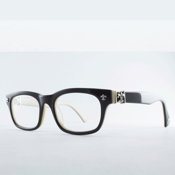 Expertly handcrafted from deep black acetate, these glasses are adorned with Chrome Hearts’ signature sterling silver motifs. Every detail from the engraved temples to the polished finish speaks of artisanal excellence and timeless design. The dark hue enhances its royal charm, while the metallic embellishments add a touch of subtle grandeur.